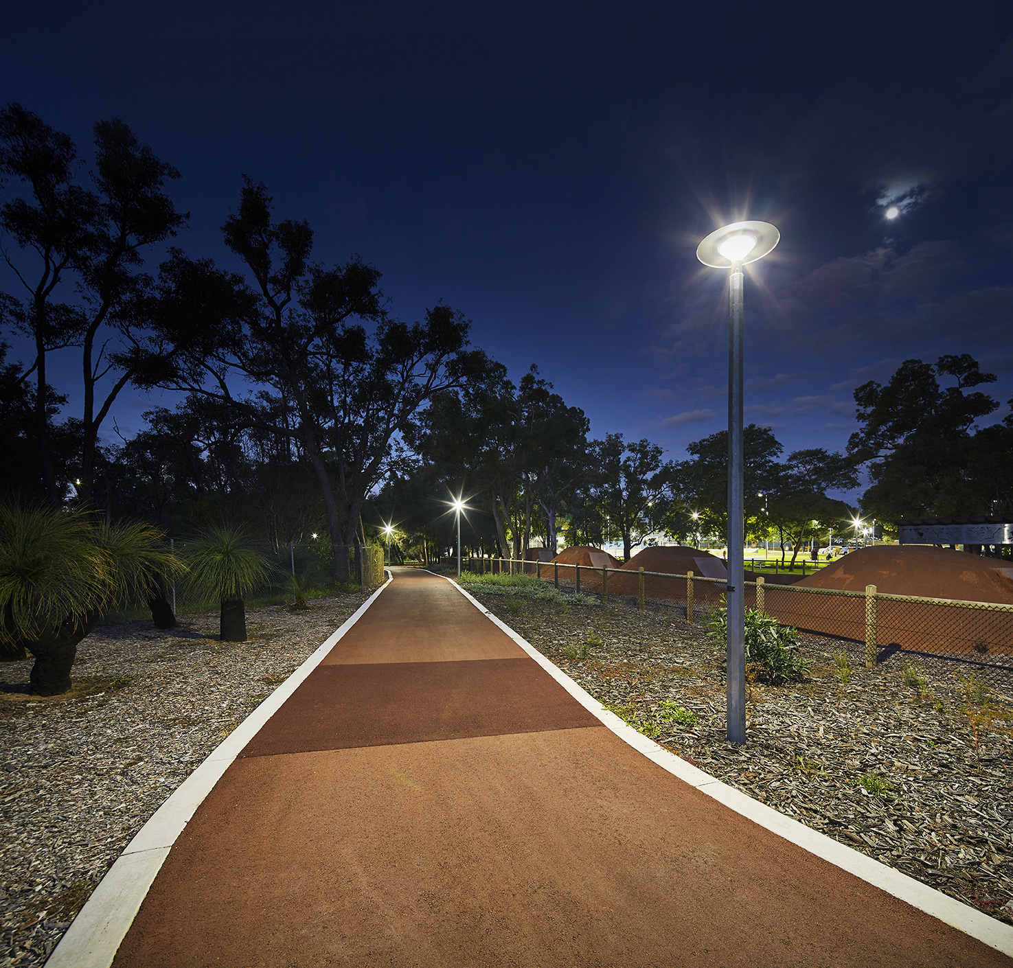 City of Stirling requirement was that the Community Parkland to be lit to enable safe, night-time use of elements of the site and deter anti-social behaviour in accordance with relevant latest Australian standards. From the very early concept meetings the luminaire quality against vandalism and performance requirements of the lighting were identified as key objectives. A carefully considered lighting concept from the stage of project inception, not only added excitement to the design, but also helped promote wellbeing of users.